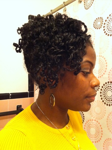 Yesterday I decided to try an updo after seeing several people with cute updos. The night before, I rolled my twists on flexirods to stretch them because I noticed they shrank a lot more this time than last time. When I finally took the flexirods out, they were curled, but stretched.