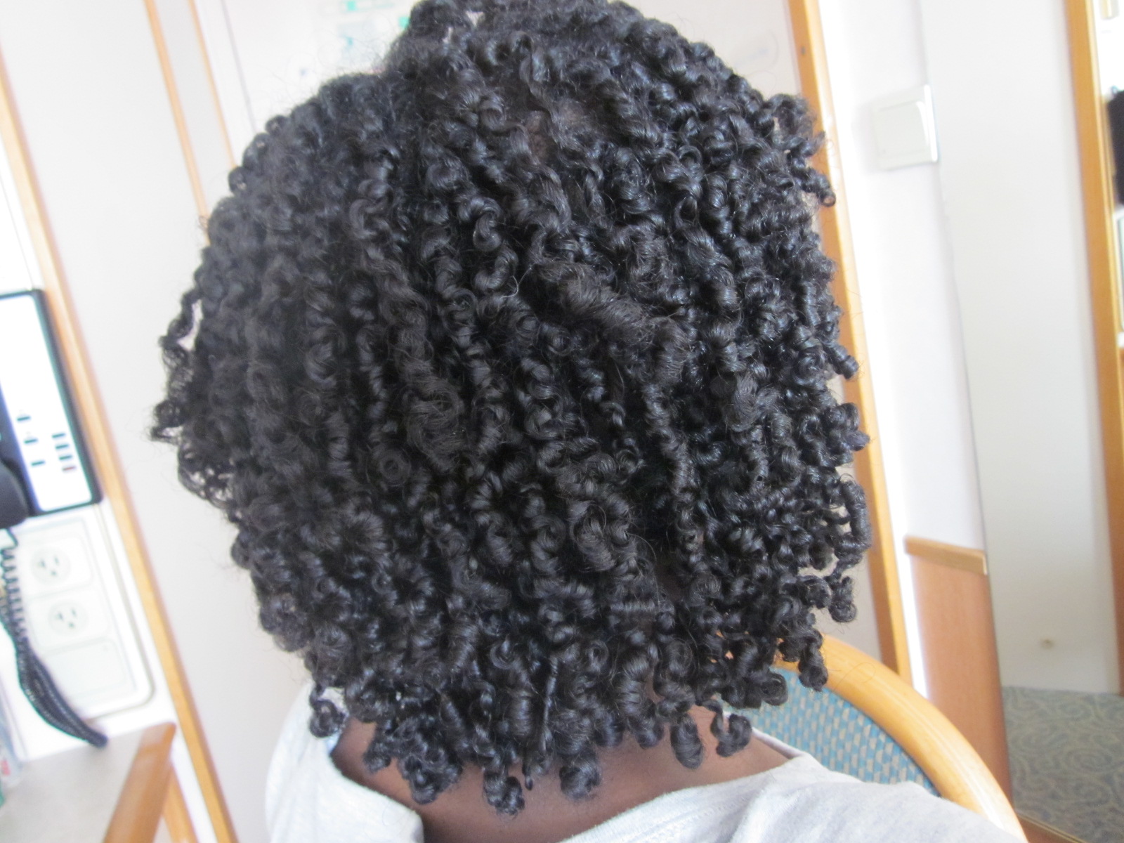 I swam with the dolphins and my hair did get a little wet in the back. My hair seemed to shrink and get shorter and shorter each day. When I returned home, I put the mini twists in four big twists to stretch it. I even did a french braid on it to go to the gym.