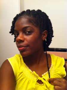 People keep asking me what I use in my hair and I realized the only thing I use is olive oil. I don’t use any other products for hold or moisture when I twist my hair. I oil my hair when its wet and I first twist it and I oil it a few times during the week.