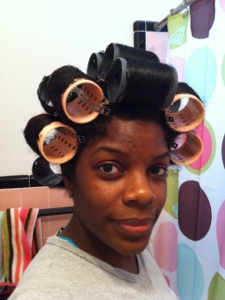 My hair is so curly, it was hard to wrap my hair around the rollers, especially in the middle of my head where it’s curlier. I successfully set it though. I sat under the dryer for an hour. Once it dried, I used the InStyler to straighten the roots a bit.