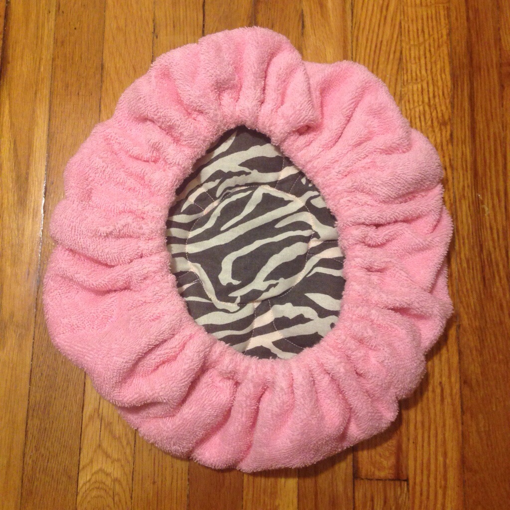 This scarf is shaped like a hood, but has long ends that you can tie in the front or the back. Genius! It is perfect for my smooth styles, like when I slick my hair back in a bun or when my hair is straight and I wrap it. It keeps my hair smooth underneath. Now I can be cute for bed!
