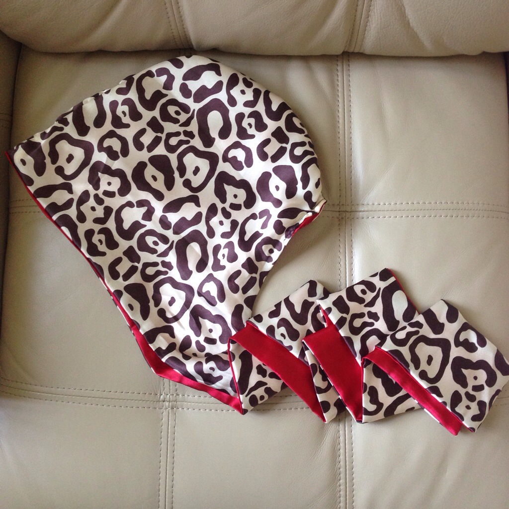 The hooded scarf comes in a variety of beautiful, vibrant colors and prints. I chose the Cheetah Dreams hooded scarf with red on the inside. Choosing a print was probably the hardest decision because I loved so many of them!