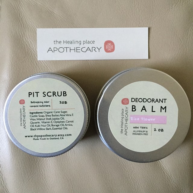 The Pit Scrub is amazing! It’s like a sugar scrub with various essential oils. It is used “to slough away dead skin cells that harbor odor causing bacteria.” I didn’t expect to love it as much as I do, but It’s effective and not irritating.