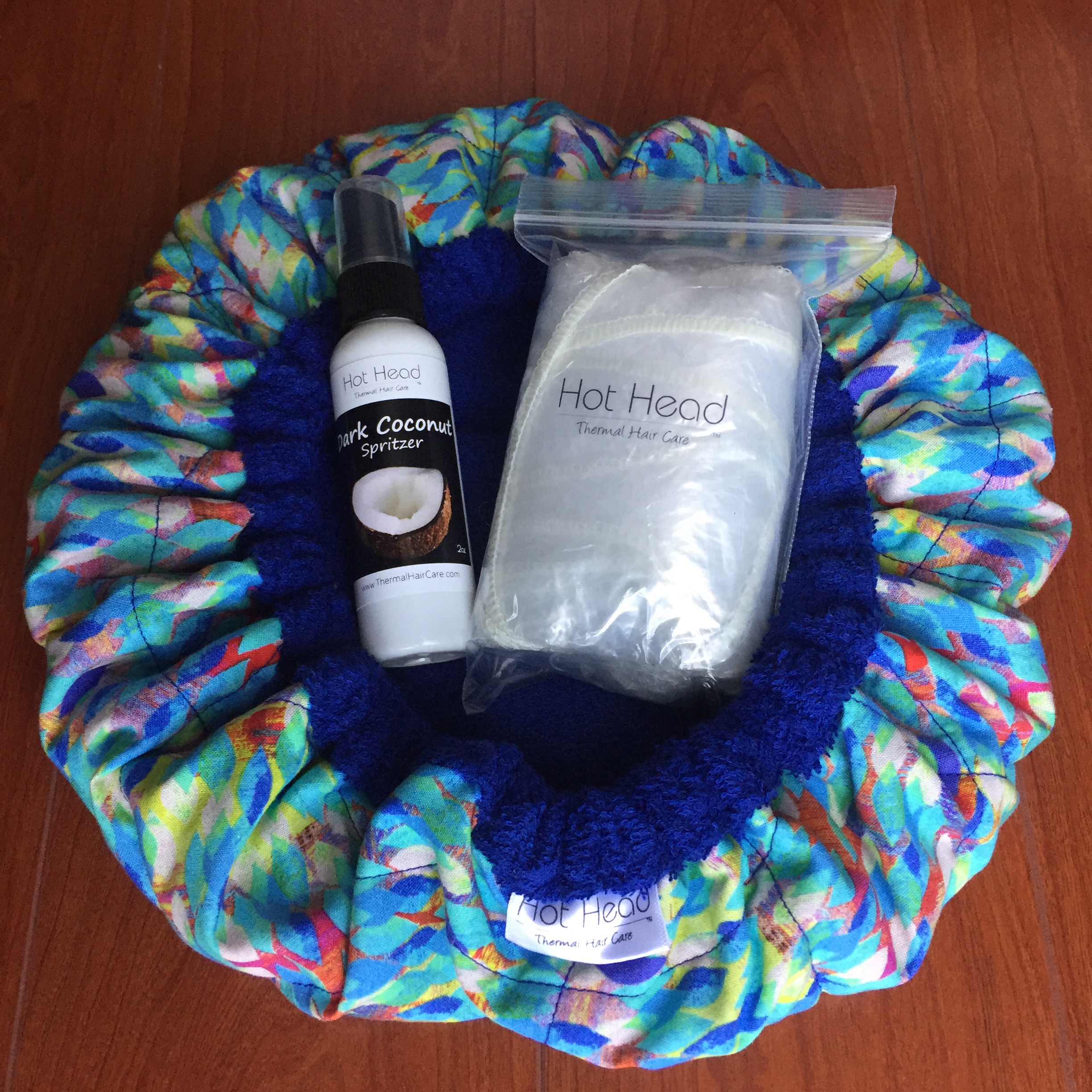The hot head deep conditioning cap is a microwaveable cap that is filled with flax seeds that are warmed to provide heat for deep conditioning. Genius!