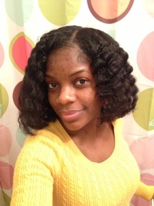 As for me and my hair… I washed and deep conditioned my hair as usual. Herbal Essences Shampoo (any kind) and Camille Rose Naturals Coconut Water Penetrating Hair Treatment. These are my staples. I always wash my hair at the kitchen sink and that didn’t change. I rinsed out my deep conditioner at the kitchen sink as well. I then followed the process recommended, by beginning the styling process in the shower. I let the water run on my hair and made sure it was detangled in the position I wanted my wash and go to fall. I twisted it into a low bun while I showered, then just wrapped a towel around my whole head when I got out of the shower.