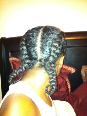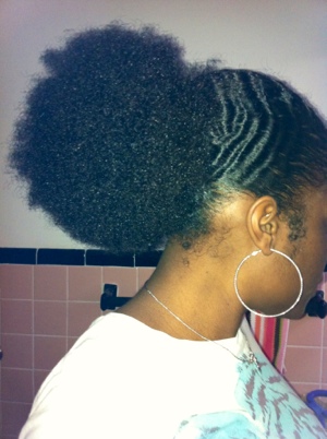In any case, I had no clue what to do with my hair tonight, so I decided on doing two big cornrows. I’ve noticed a lot of people achieving great braidouts from doing this. I’m not really interested in wearing my hair out, but it seemed like a great way to braid my hair up for the night, so we’ll see what kind of results it yields. I think I did it a little too tight though because my head hurts. I also think my head is getting more tender, so I have to be careful.